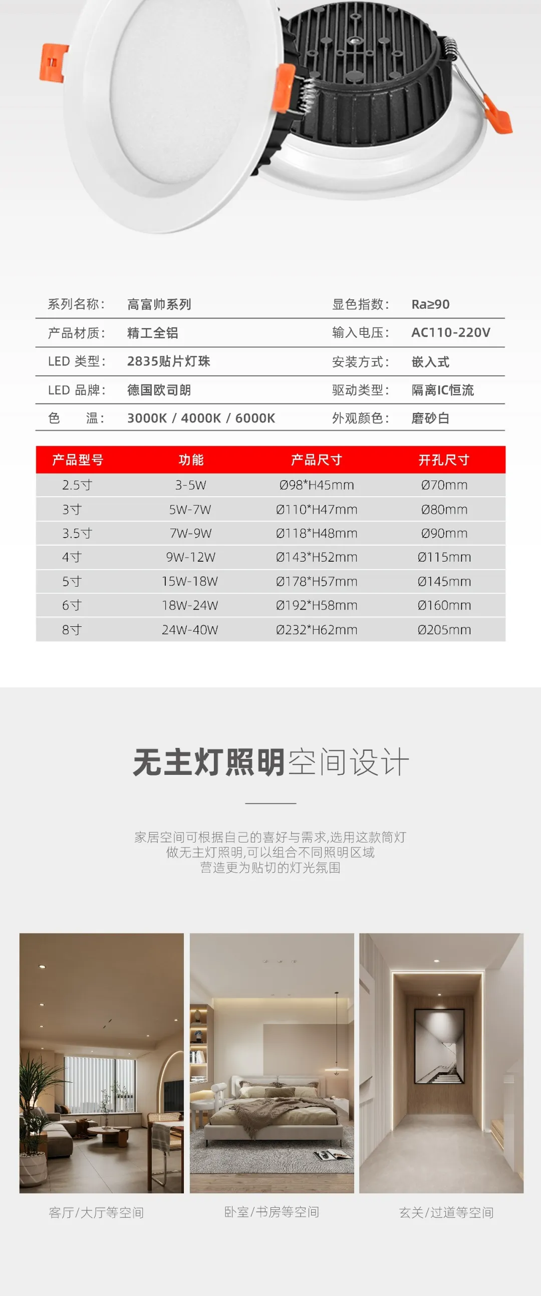 “高富帅”系列COB、LED贴片筒灯
