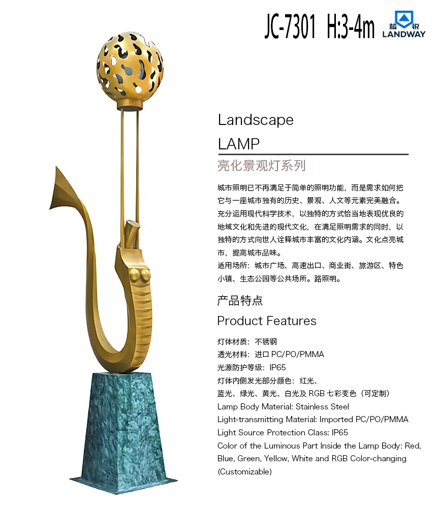 灯体内侧发光部分颜色:红光、蓝光、绿光、黄光、白光及RGB七彩变色(可定制)适用场所:城市广场、高速出口、商业街、旅游区、特色小镇、生态公园等公共场所。