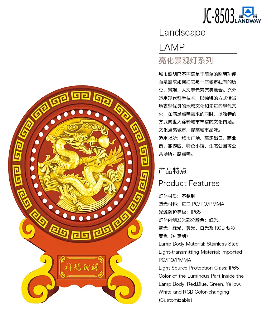灯体内侧发光部分颜色:红光、蓝光、绿光、黄光、白光及RGB七彩变色(可定制)适用场所:城市广场、高速出口、商业街、旅游区、特色小镇、生态公园等公共场所。