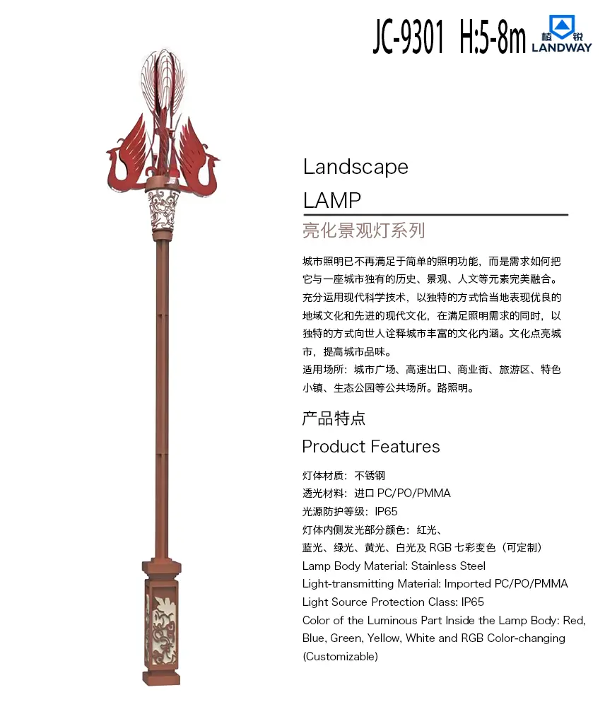 灯体内侧发光部分颜色:红光、蓝光、绿光、黄光、白光及RGB七彩变色(可定制)适用场所:城市广场、高速出口、商业街、旅游区、特色小镇、生态公园等公共场所。