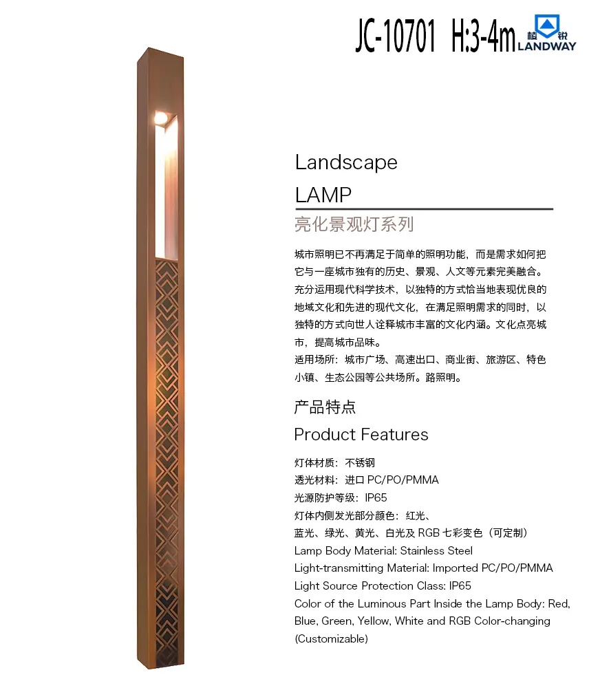 灯体内侧发光部分颜色:红光、蓝光、绿光、黄光、白光及RGB七彩变色(可定制)适用场所:城市广场、高速出口、商业街、旅游区、特色小镇、生态公园等公共场所