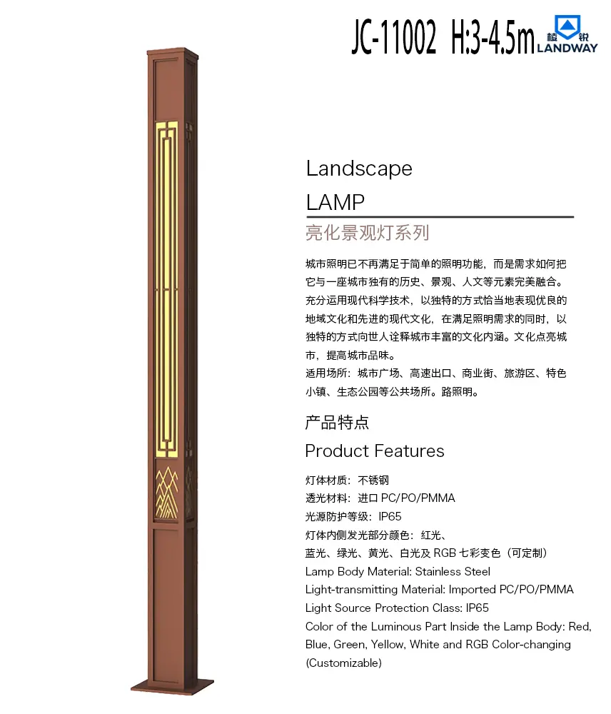 灯体内侧发光部分颜色:红光、蓝光、绿光、黄光、白光及RGB七彩变色(可定制)适用场所:城市广场、高速出口、商业街、旅游区、特色小镇、生态公园等公共场所