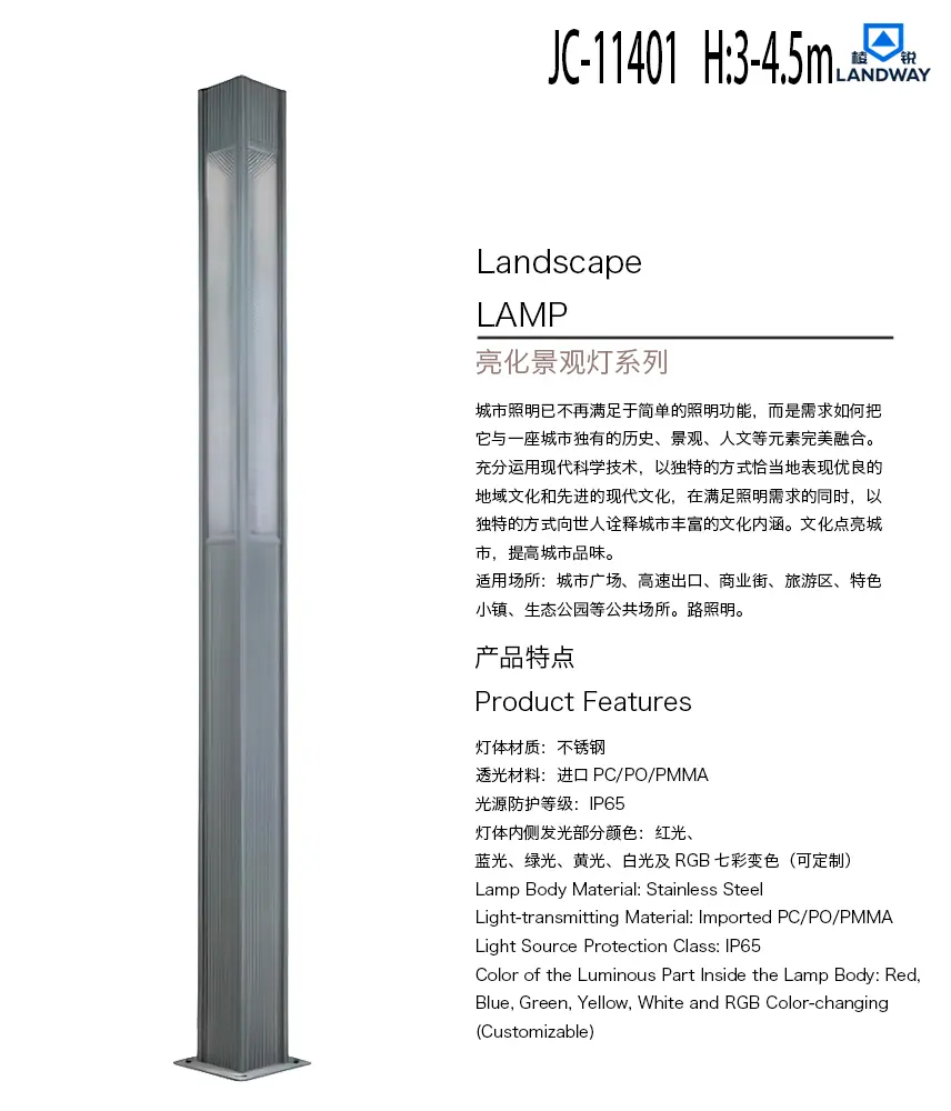 灯体内侧发光部分颜色:红光、蓝光、绿光、黄光、白光及RGB七彩变色(可定制)适用场所:城市广场、高速出口、商业街、旅游区、特色小镇、生态公园等公共场所