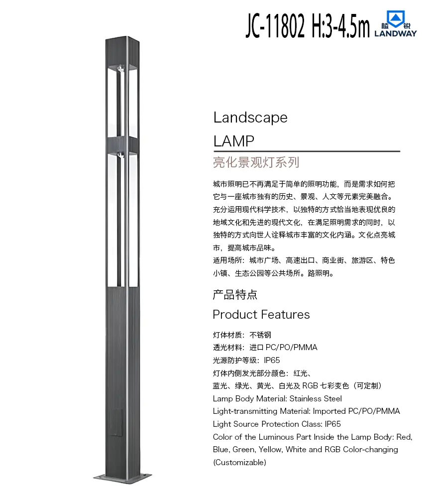 灯体内侧发光部分颜色:红光、蓝光、绿光、黄光、白光及RGB七彩变色(可定制)适用场所:城市广场、高速出口、商业街、旅游区、特色小镇、生态公园等公共场所