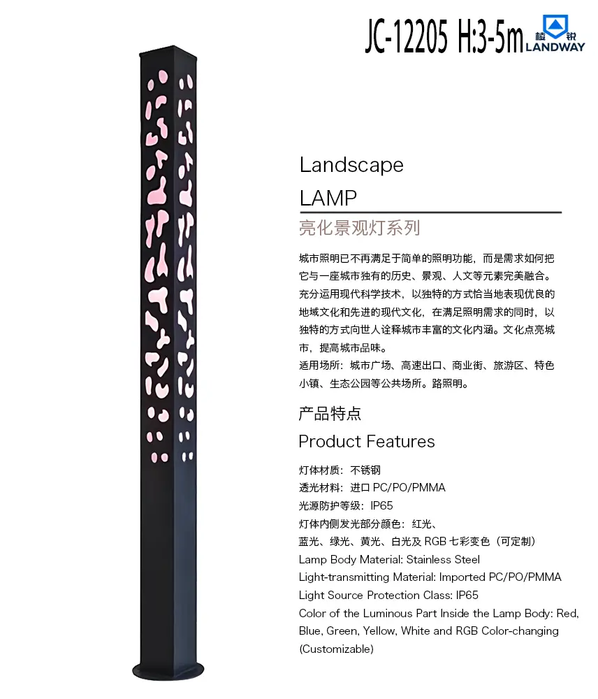 灯体内侧发光部分颜色:红光、蓝光、绿光、黄光、白光及RGB七彩变色(可定制)适用场所:城市广场、高速出口、商业街、旅游区、特色小镇、生态公园等公共场所