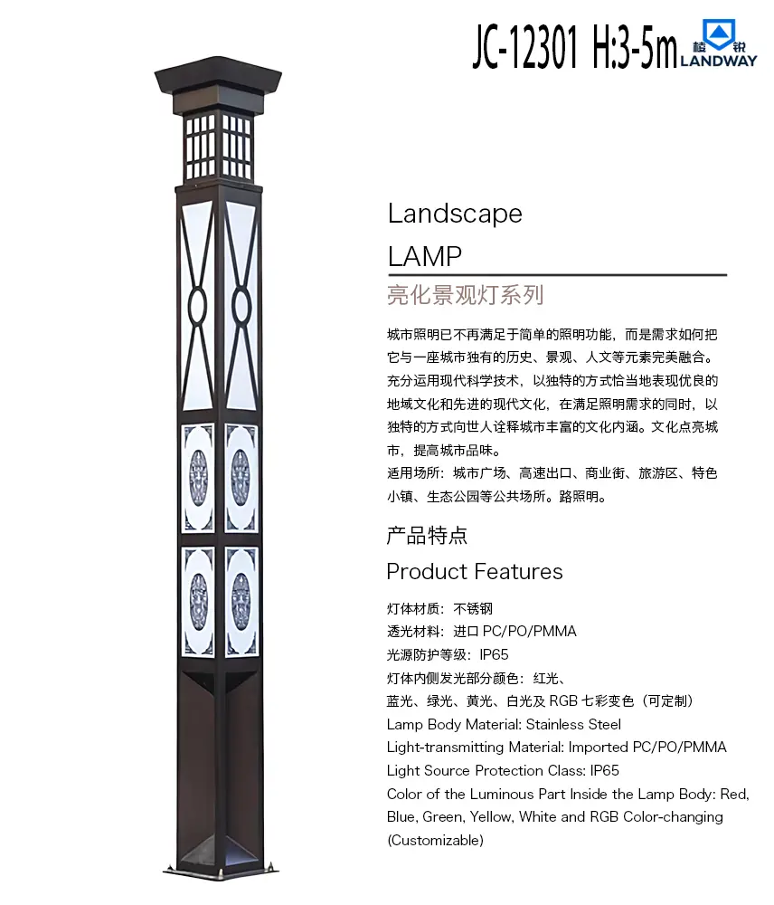 灯体内侧发光部分颜色:红光、蓝光、绿光、黄光、白光及RGB七彩变色(可定制)适用场所:城市广场、高速出口、商业街、旅游区、特色小镇、生态公园等公共场所
