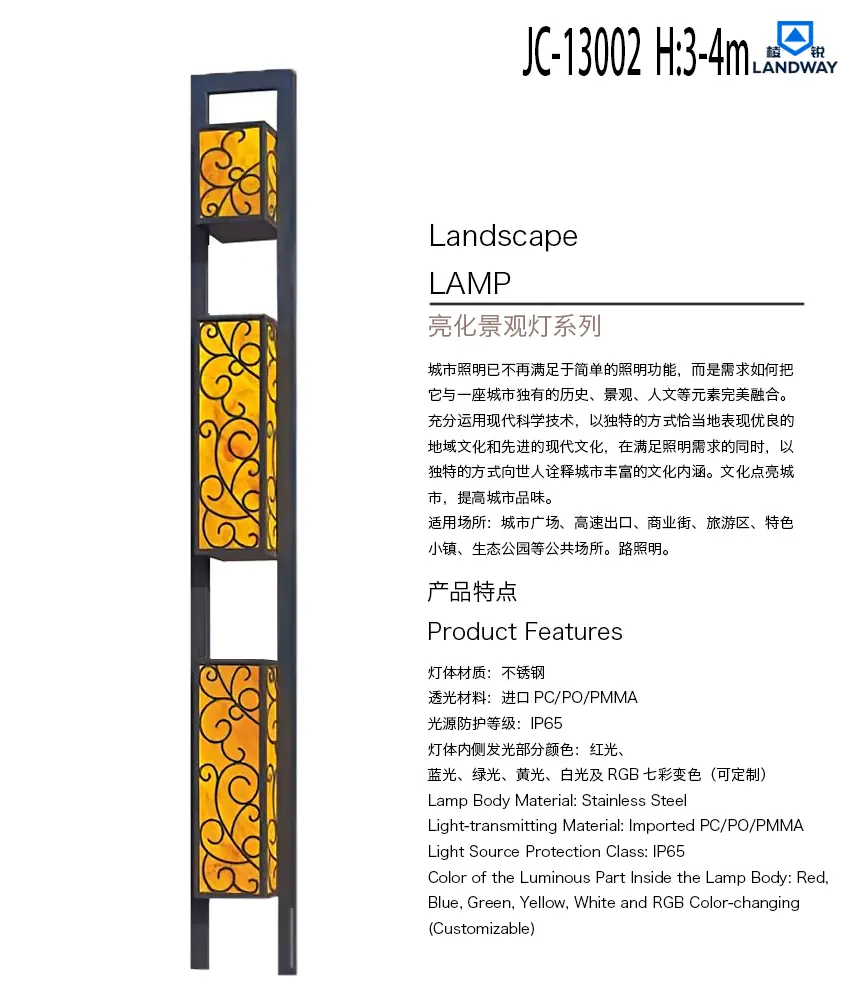 灯体内侧发光部分颜色:红光、蓝光、绿光、黄光、白光及RGB七彩变色(可定制)适用场所:城市广场、高速出口、商业街、旅游区、特色小镇、生态公园等公共场所