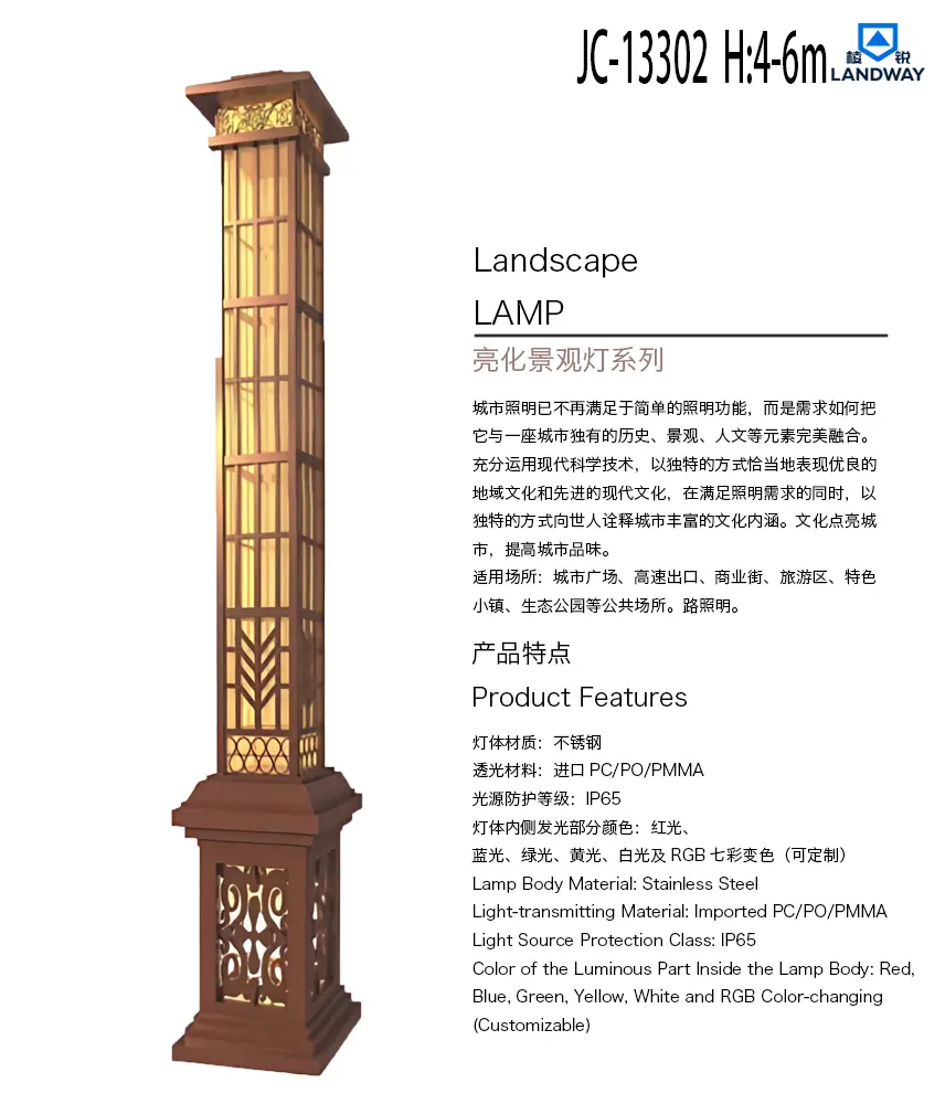 灯体内侧发光部分颜色:红光、蓝光、绿光、黄光、白光及RGB七彩变色(可定制)适用场所:城市广场、高速出口、商业街、旅游区、特色小镇、生态公园等公共场所