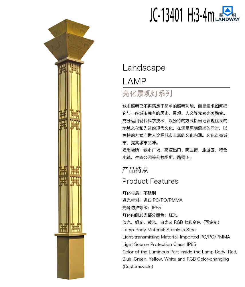 灯体内侧发光部分颜色:红光、蓝光、绿光、黄光、白光及RGB七彩变色(可定制)适用场所:城市广场、高速出口、商业街、旅游区、特色小镇、生态公园等公共场所
