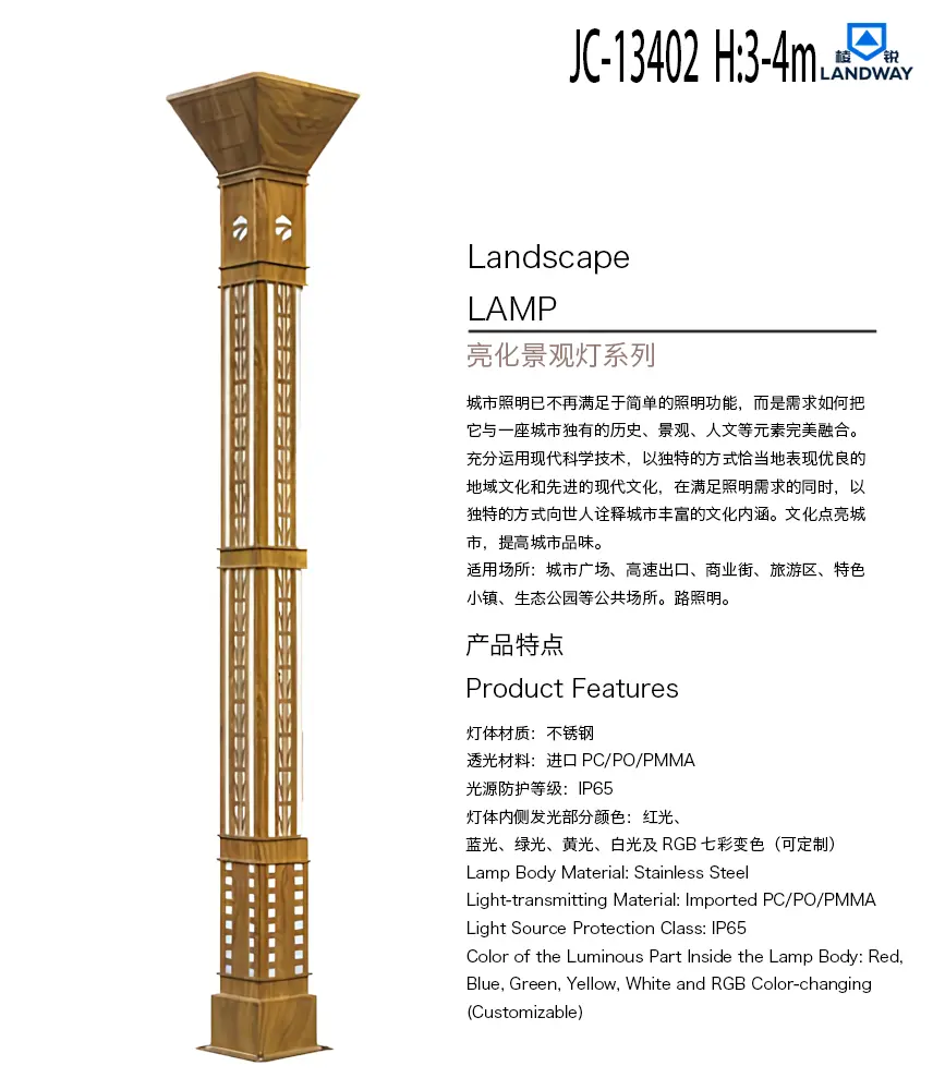 灯体内侧发光部分颜色:红光、蓝光、绿光、黄光、白光及RGB七彩变色(可定制)适用场所:城市广场、高速出口、商业街、旅游区、特色小镇、生态公园等公共场所