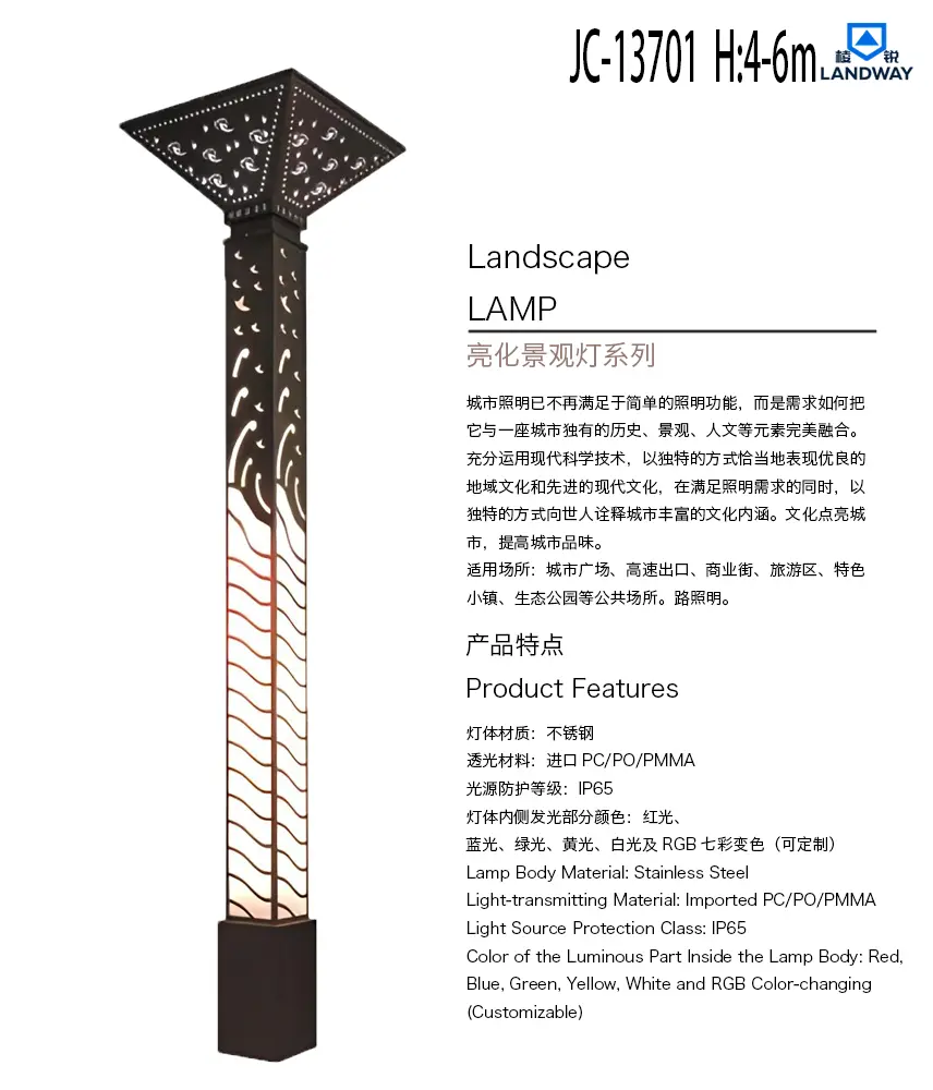 灯体内侧发光部分颜色:红光、蓝光、绿光、黄光、白光及RGB七彩变色(可定制)适用场所:城市广场、高速出口、商业街、旅游区、特色小镇、生态公园等公共场所