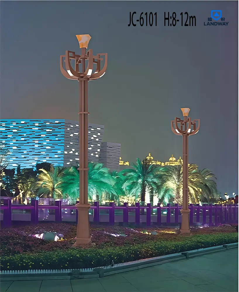 适用光源:LED模组紧固件:紧固螺栓、螺母为不锈钢底座围筒可定做各种文化元素适用场景:主要用于主干道、迎宾大道、文化旅游区、产业园、特色小镇等道路照明