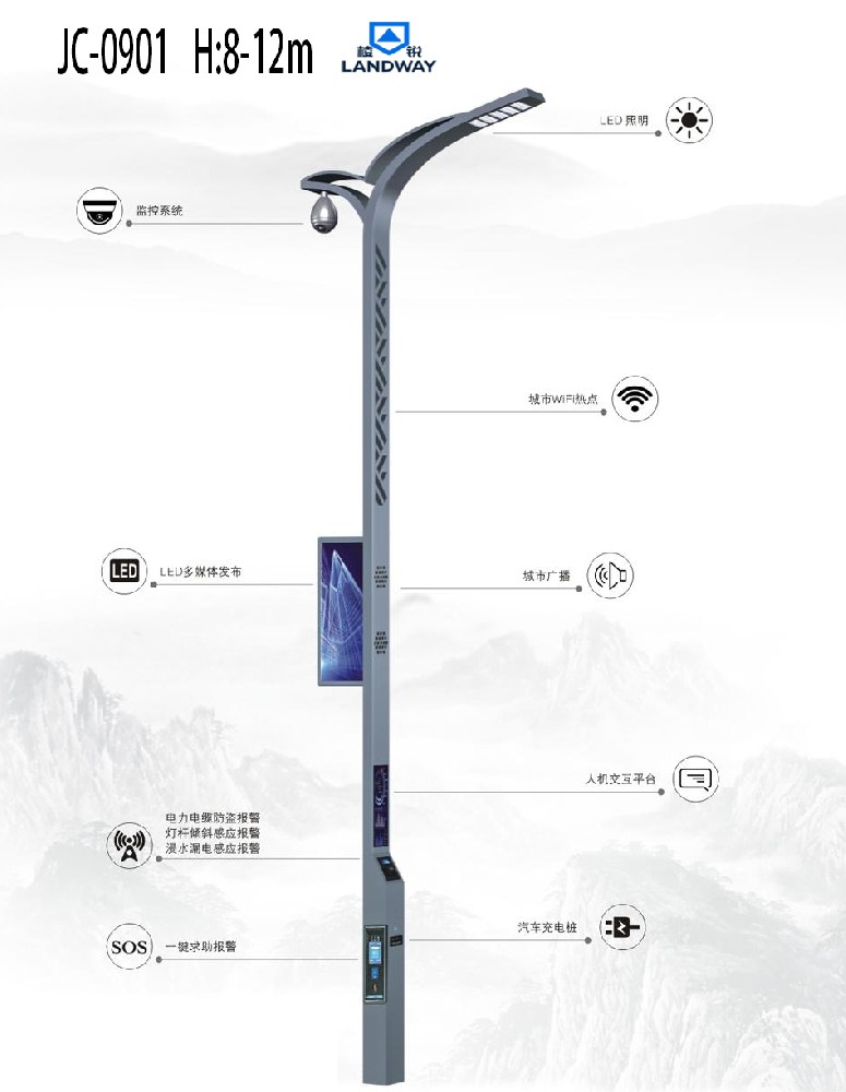 智慧灯杆JC-0901H8-12m
